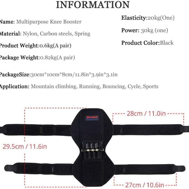 دعامة الركبة المبتكرة بقوة الزنبرك (Knee Booster) – زوج واحد | أسود